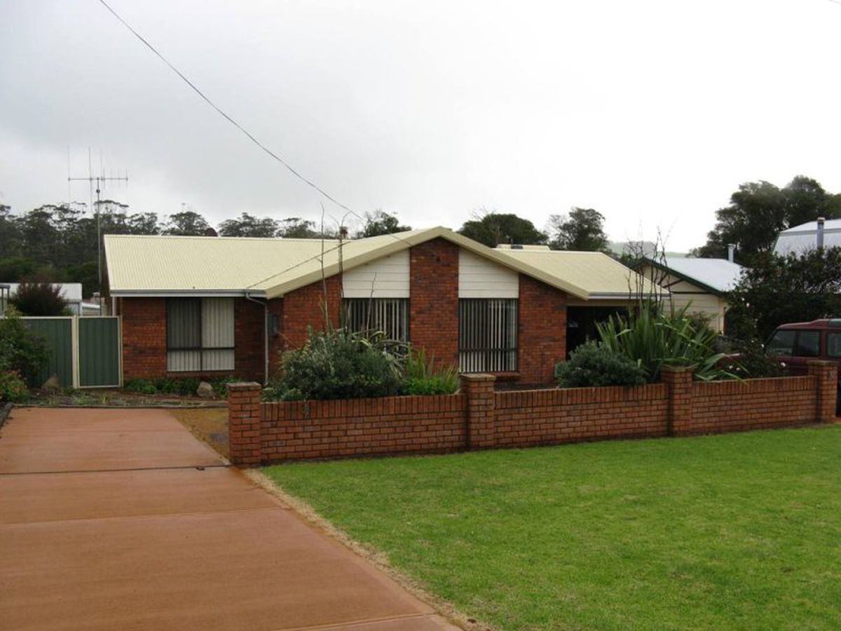 The proximity to everything is one of the best features of this large 4 bedroom, 2 bathroom brick veneer home. It faces the town oval and backs onto Davidson Lane- just a few metres from the main supermarkets, the Walpole Resource Centre, the Recreation Centre, Community Centre, Primary School and Silver Chain Nursing Post. It is zoned R30. The home has a modern open plan kitchen combined with dining/lounge, a large separate lounge (with bar nook), a 2 bay carport under the main roof, slow combustion wood heater and RC air conditioning, ensuite bathroom and built in robes, and a large patio area with clear blinds. A huge lock up shed with power and a concrete floor will delight the man of the house. This is accessible from the rear lane. Easy care gardens.