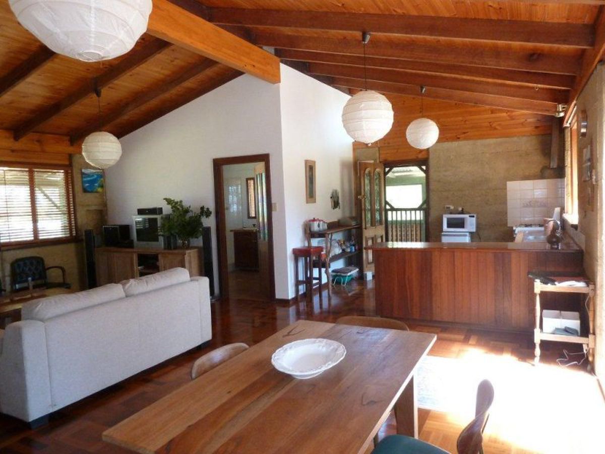 This lovely 1 bedroom, 1 bathroom rammed earth home with pitched ceilings is high on the hill at Nornalup with plenty of character and fantastic views. There are two external studio bedrooms also, which are totally separate with own lounges, fires and wash basins, ideal for the teenagers or visitors. Huge powered workshop, large rainwater tanks and furniture can be included in the sale.