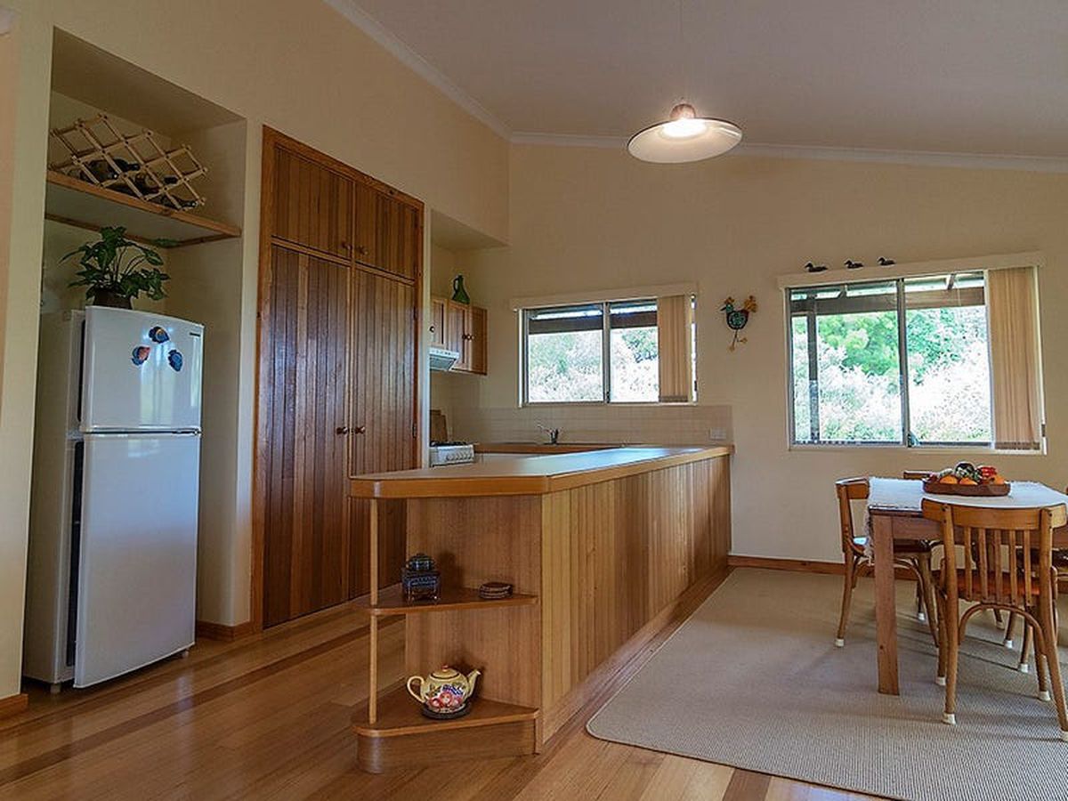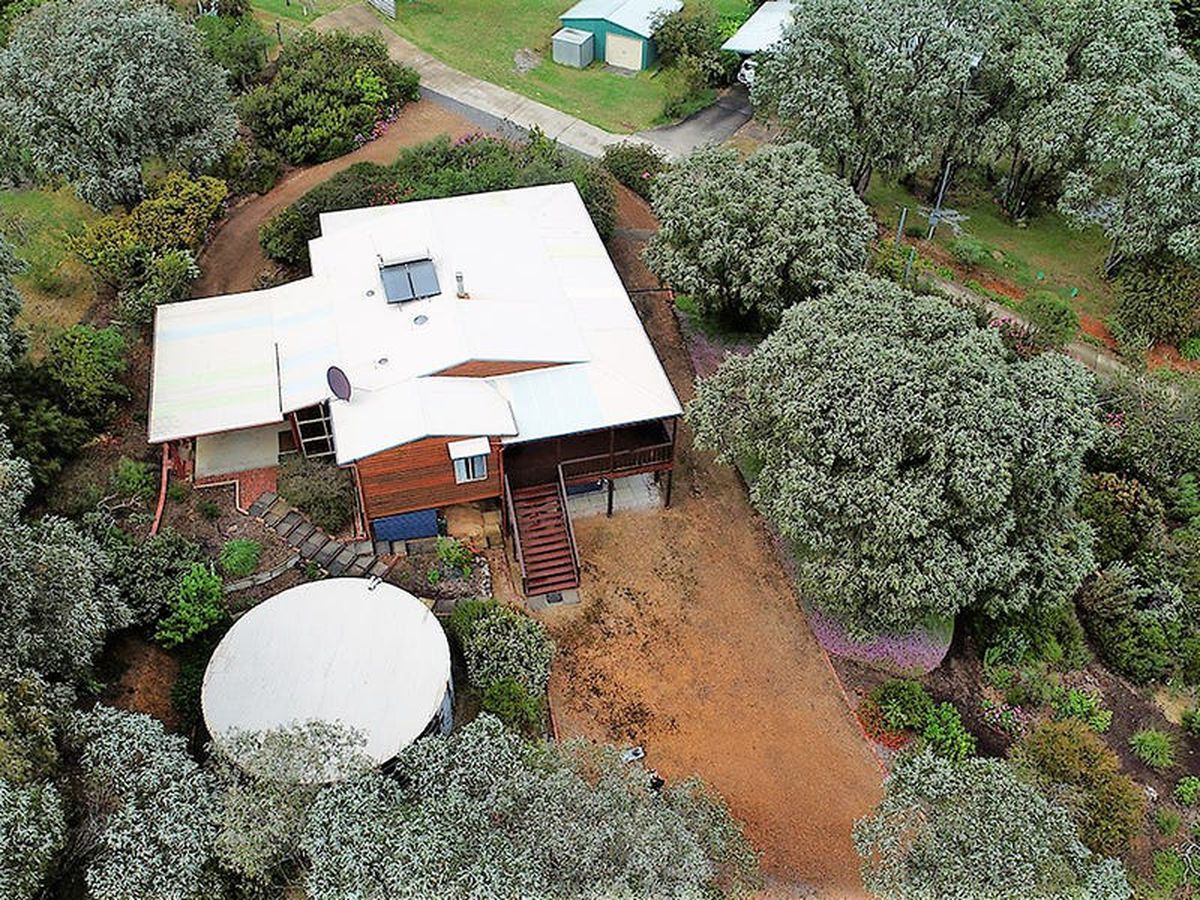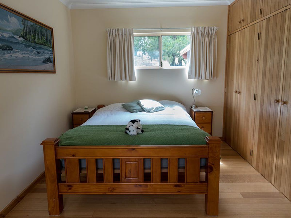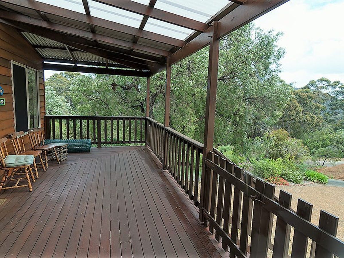 A custom built, 3x2, of Jarrah post and Western Red Cedar construction with attractive low maintenance gardens. It is light and spacious and features open-plan living with Tasmanian Oak Flooring throughout, generous built-in storage and two wide verandas overlooking the gardens and the Frankland River valley. The huge under-croft area is enclosed. There is ample
