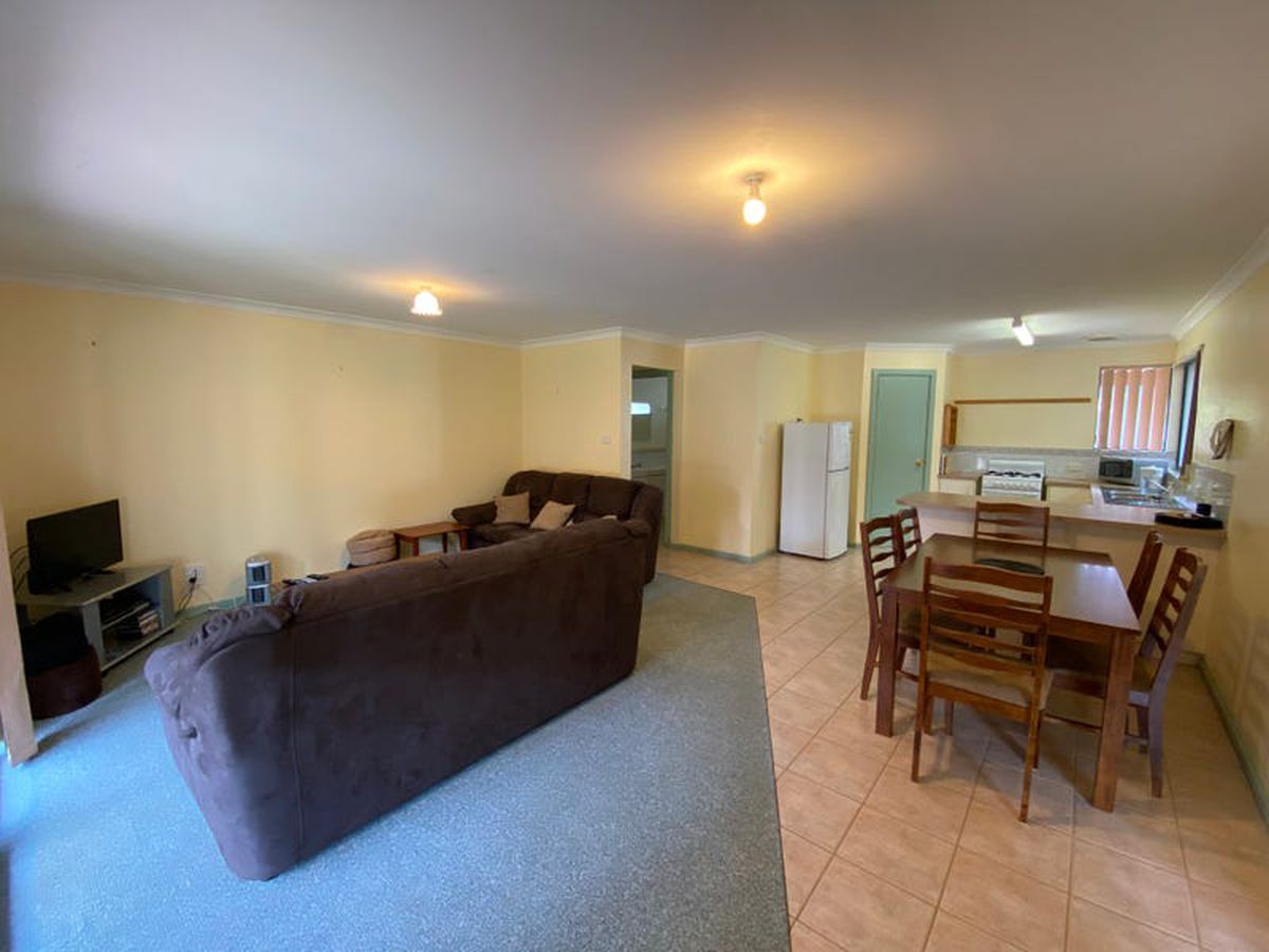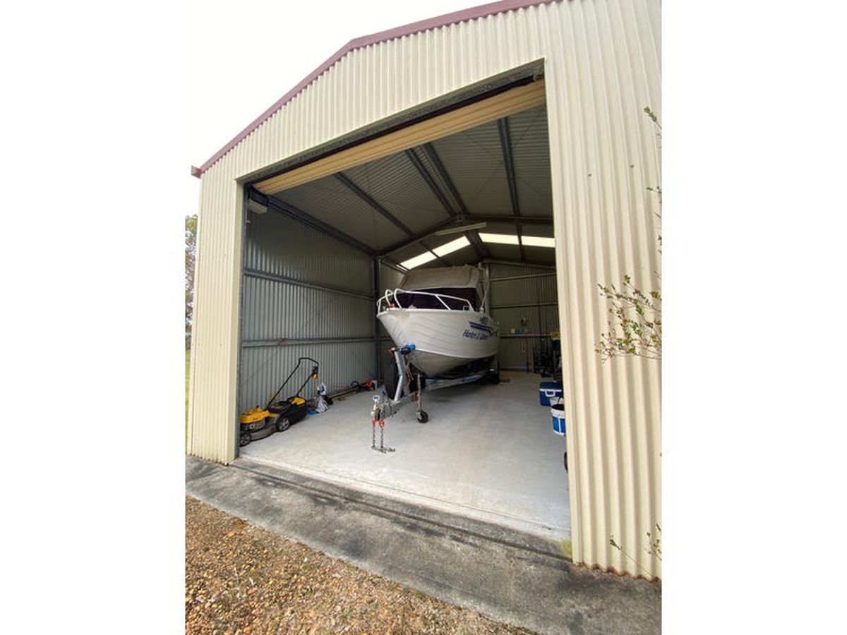 At one end of this duplex pair is a lounge, kitchen, bathroom and 2 bedrooms. At the other end is a mirror image joined by the shared laundry. There is a full-length verandah, double carport, plus a large powered workshop that is high enough with a roller door to store your boat or caravan.