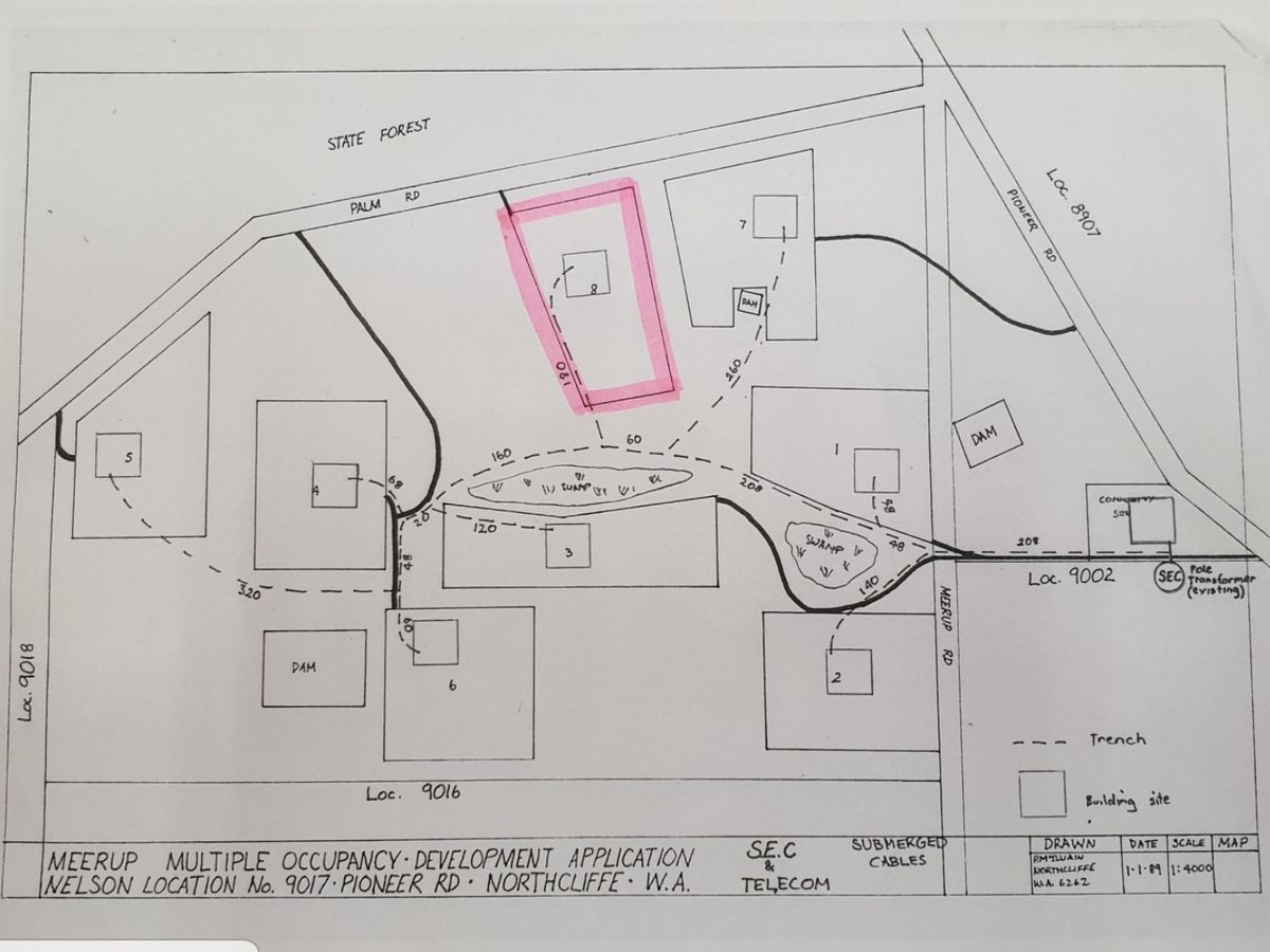 You have the opportunity to own an I/8 Share in 122ac or 49.72hc, the house site/block number 8, are 5 acres plus all the land in common shared amongst the 8 other shareholders, including access to 3 large dams. The property is about 10mins from Northcliffe and nearly 25min from Windy Harbour and Salmon Beach. The block is 11.5km as the crow flies from the Coast. There is a mud-brick shed and an old transportable, that needs some serious TLC.