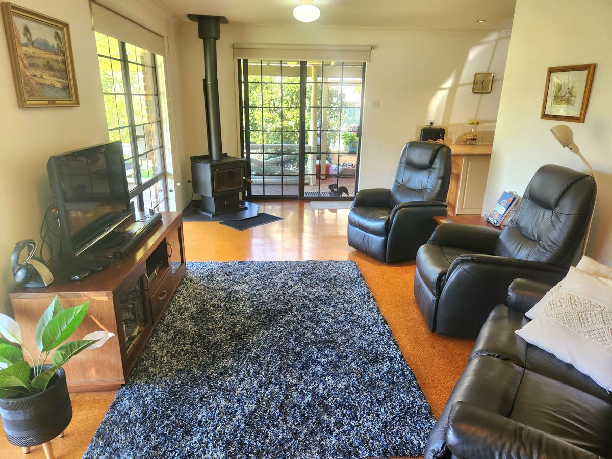 Comfortable Interiors: Inside, you'll find a cozy and warm ambiance with a Kent solid fuel wood tile fire for those chilly nights and a Fujitsu reverse cycle air-conditioner for year-round comfort. Blinds adorn all windows for privacy and temperature control.