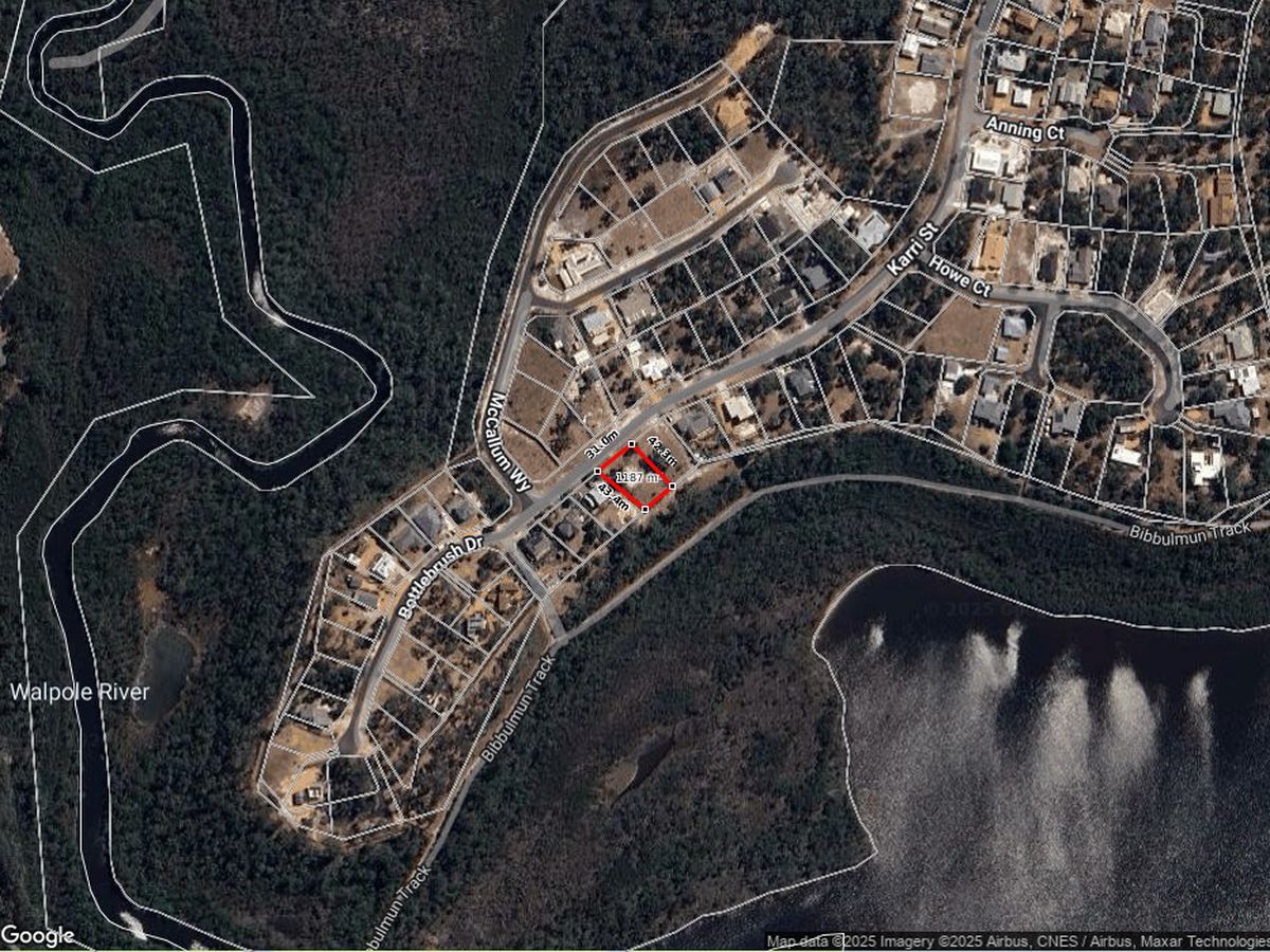 Enjoy unrestricted panoramic views of the Walpole and Nornalup Inlets, with the assurance that these views won't be obstructed by buildings in the future. At the bottom of the block, you'll find the Bibbulmun Track, providing convenient walk or bike ride into town in one direction, while the other direction takes you across the Walpole River to the Walpole Country Club for a leisurely game of golf or lawn bowls, along with access to the river for your canoeing adventures.