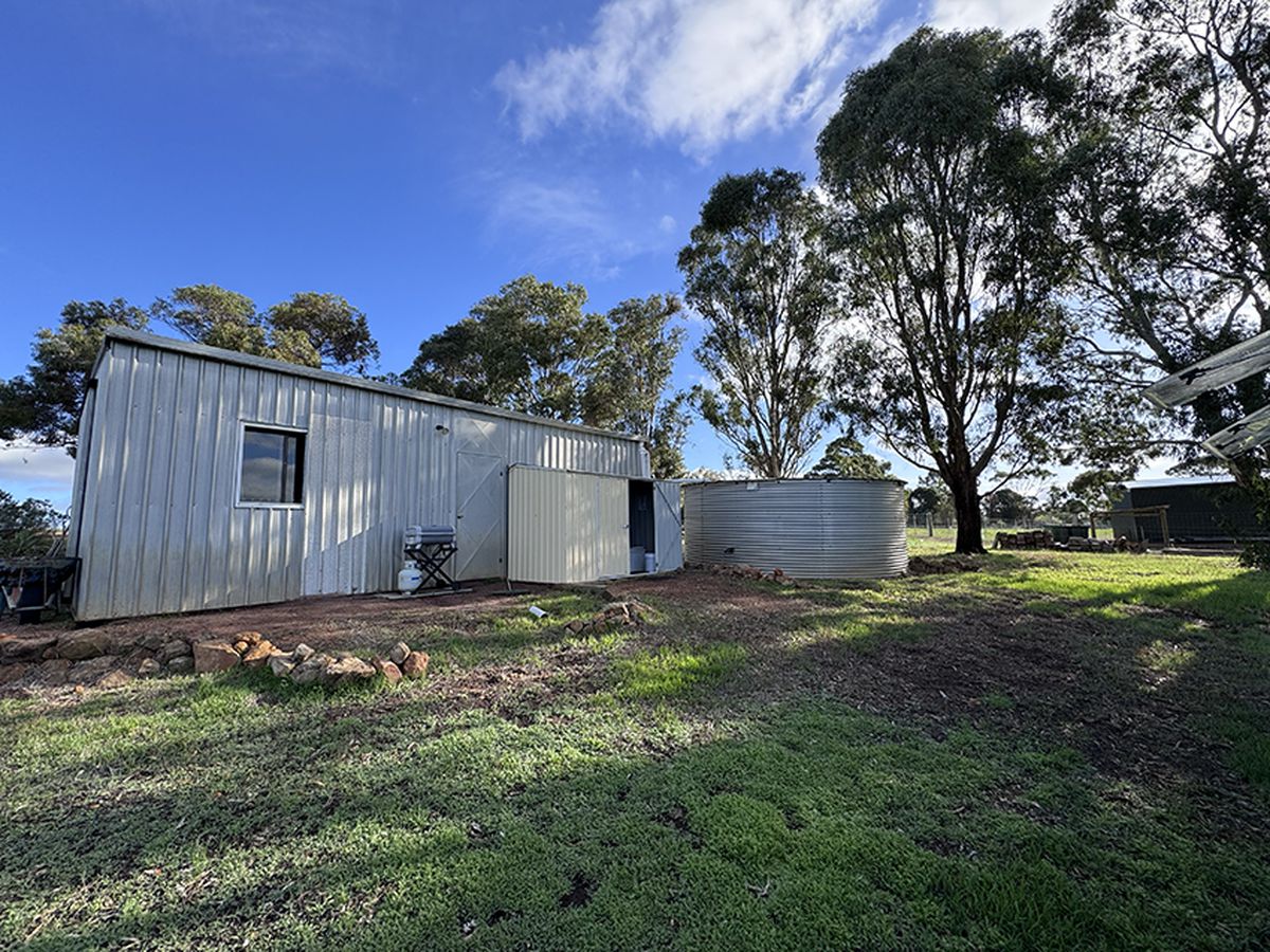 Property is zoned Rural and comes with a 10x 8m shed which is powered by 15amp mixed circuit, fully concreted and is set up as with insulated paneling and has 3x 15amp external GPO's. The shed is not classed as a habitable dwelling. It has approximately a 56,000litre rainwater tank. There is no dam but with the slope it would be easy to form and fill one and with some damp areas on the property there is every possibility of underground water as well.