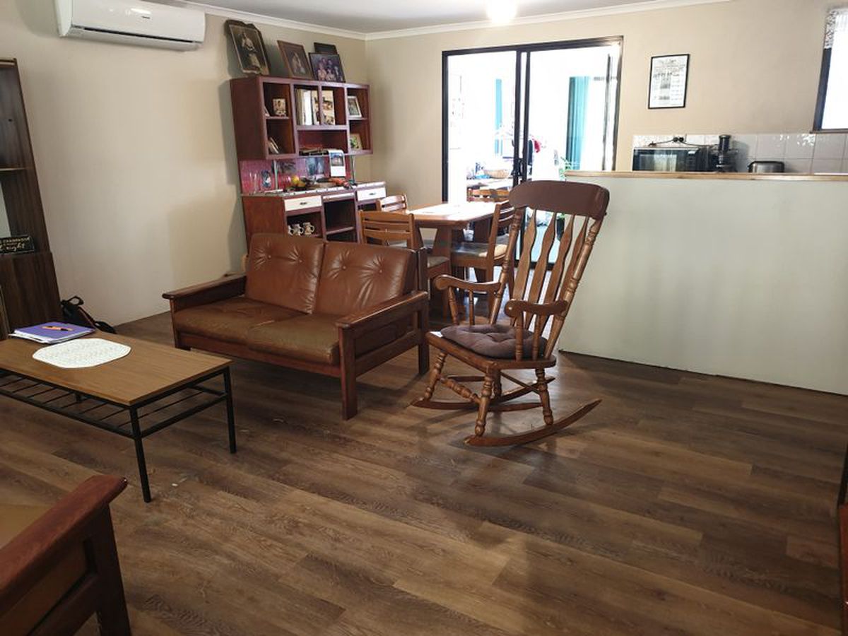 The home is a 4 bedroom OR 3 bedroom and office with open plan living space and has a galley style kitchen and would suit a small family or couple. The home is fibro with cladding, and has 2 rainwater tanks. You may wish to renovate down the track but the home is ready to move into as is. Walk through the dining room into a large Activity/Sunroom which leads out to the back entertaining area which is fenced.