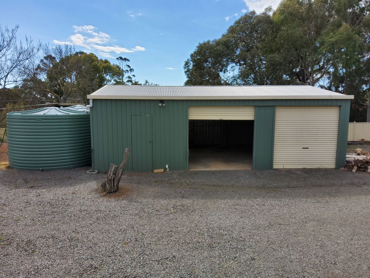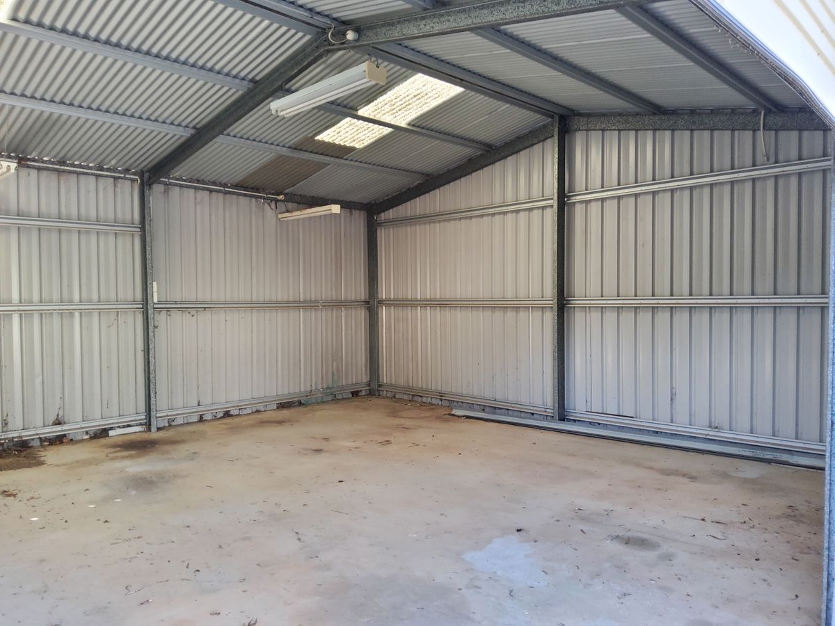 12x 8m shed with 2 roller doors and personal access door. Fully concreted good lighting and power internally and externally.