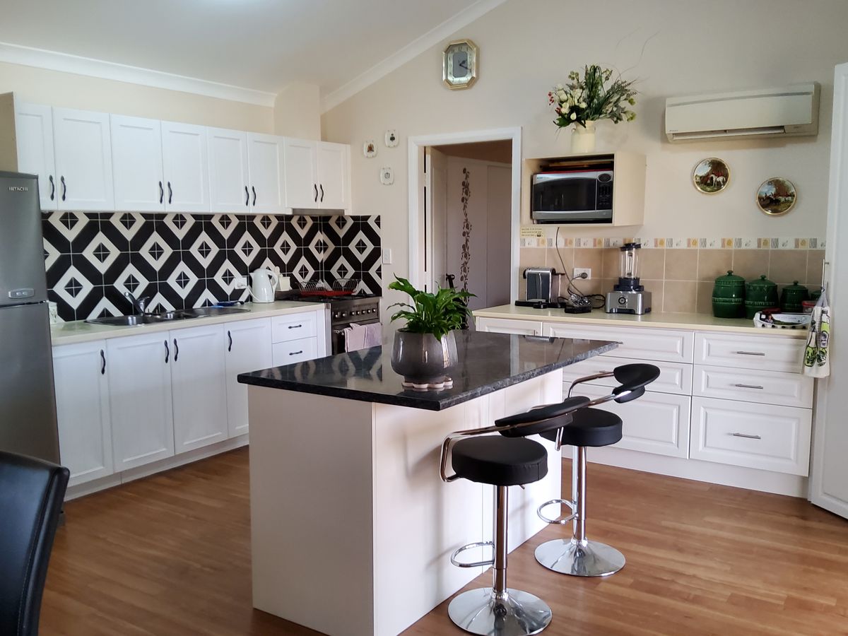 Kitchen has a freestanding gas stove and cooktop, beautifully presented with new tiles paint and cupboards. Hot water is supported by instantaneous gas.