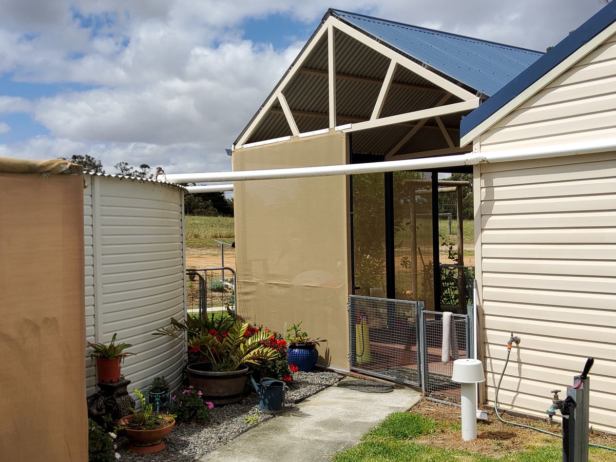 Your shed is 20m x 10m fully concreted with a Granny flat attached, ample room for tools, caravan , boat or cars. The shed houses the complete stand alone 5Kw solar system to supply electricity to your home without the western power bills! You also have a quality automatic 7KVa backup generator to boost the solar batteries for those days the sun doesn't want to come out and play. It gets minimal use! The shed roof houses the 20 x solar panels.