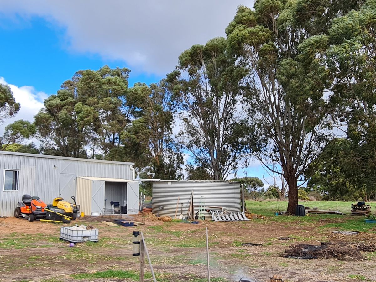 Property is zoned Rural and comes with a 10x 8m shed which is powered by 15amp mixed circuit, fully concreted and is set up as with insulated paneling and has 3x 15amp external GPO's. The shed is not currently classed as a habitable dwelling. It is currently be used for storage. It has approximately a 56,000litre rainwater tank. There is no dam but with the slope it would be easy to form and fill one and with some damp areas on the property there is every possibility of underground water as well.